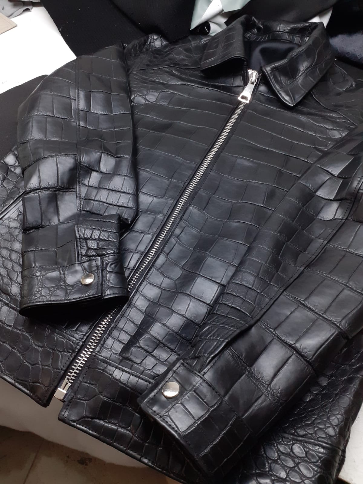 Contact us via our website or WhatsApp to start your bespoke crocodile leather jacket project.