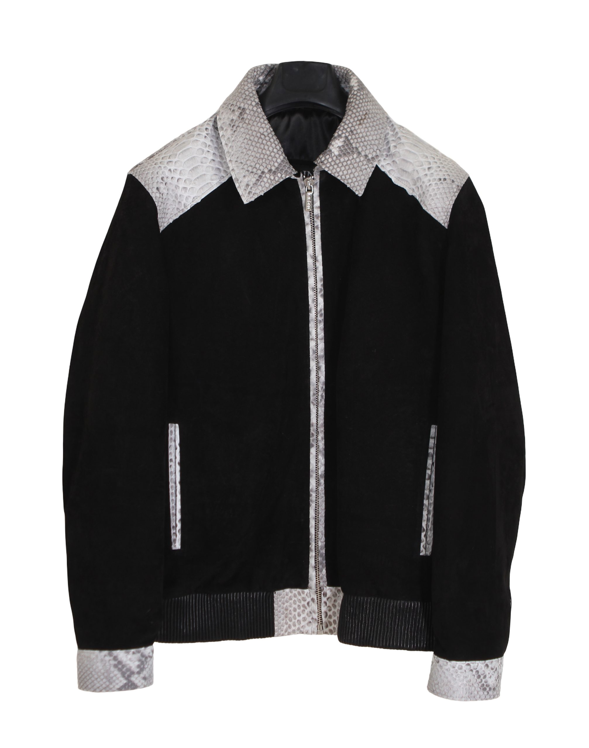 Embrace dark sophistication with our men’s python leather jacket in black and grey tones, handcrafted in Turkey for those who value refined style and exotic materials. Made from genuine python skin, this piece offers a bold yet timeless presence. Custom designs tailored to your vision are also available, with free shipping worldwide.